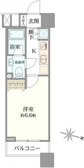 | 間取り | 1K | 専有面積 | 22.91m2(6.9坪) 壁芯 |