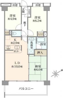 | 間取り | 3LDK | 専有面積 | 63.00m2(19.0坪) |