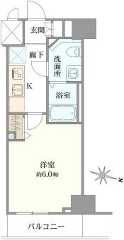 | 間取り | 1K | 専有面積 | 20.35m2(6.1坪) 壁芯 |