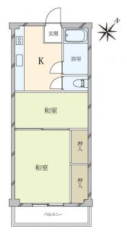 | 間取り | 2K | 専有面積 | 29.16m2(8.8坪) 壁芯 |
