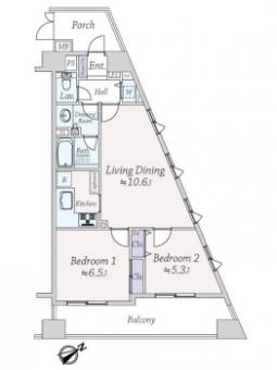 | 間取り | 2LDK | 専有面積 | 56.67m2(17.1坪) 壁芯 |