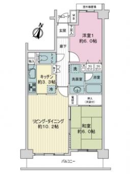 | 間取り | 2LDK | 専有面積 | 59.58m2(18.0坪) 壁芯 |