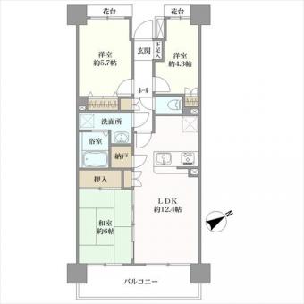 | 間取り | 3LDK+納戸 | 専有面積 | 64.18m2(19.4坪) 壁芯 |