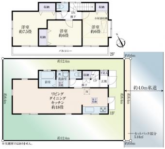 | 土地面積 | 105.30m2(31.8坪) 登記簿 別途私道負担19.83m2 | 建物延面積 | 84.24m2 |