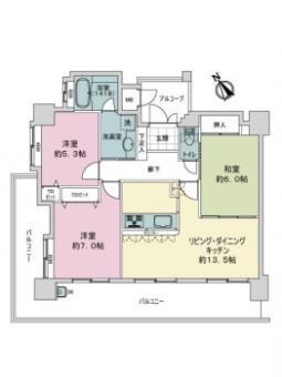 | 間取り | 3LDK | 専有面積 | 70.96m2(21.4坪) 壁芯 |