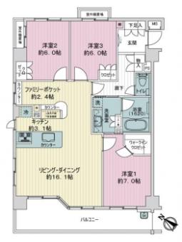 | 間取り | 3LDK | 専有面積 | 90.53m2(27.3坪) 壁芯 |