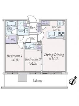 | 間取り | 2LDK | 専有面積 | 54.24m2(16.4坪) 壁芯 |