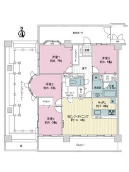 | 間取り | 4LDK | 専有面積 | 103.99m2(31.4坪) 壁芯 |