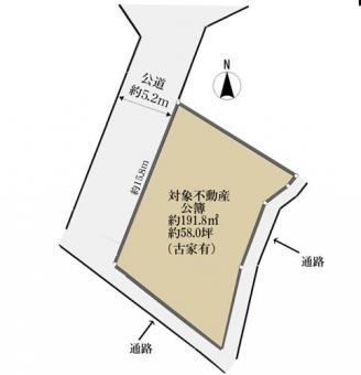 | 接道状況 | 一方 西約5.2m公道、間口:約15.8m | ||