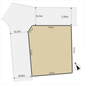 | 接道状況 | 角地 北東約5.9m公道、間口:約13.2m 北西約6.0m公道、間口:約15.2m | ||