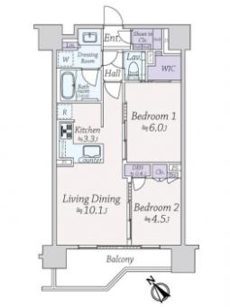 | 間取り | 2LDK | 専有面積 | 55.08m2(16.6坪) 壁芯 |