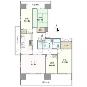 | 間取り | 4LDK+WIC WIC=ウォークインクローゼット | 専有面積 | 94.80m2(28.6坪) 壁芯 |
