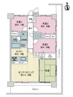 | 間取り | 4LDK | 専有面積 | 74.16m2(22.4坪) 壁芯 |