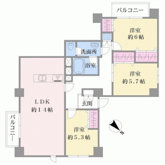 | 間取り | 3LDK | 専有面積 | 73.43m2(22.2坪) |