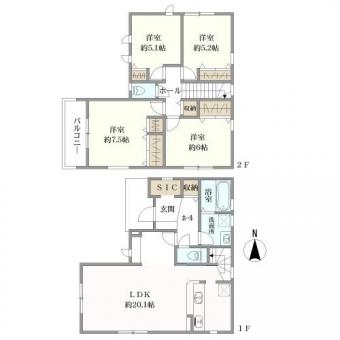 | 土地面積 | 125.02m2(37.8坪) 登記簿 | 建物延面積 | 104.74m2 |
