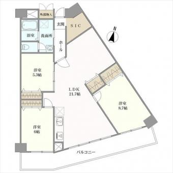 | 間取り | 3LDK | 専有面積 | 90.48m2(27.3坪) 壁芯 |