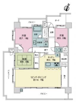 | 間取り | 3LDK | 専有面積 | 100.06m2(30.2坪) 壁芯 |