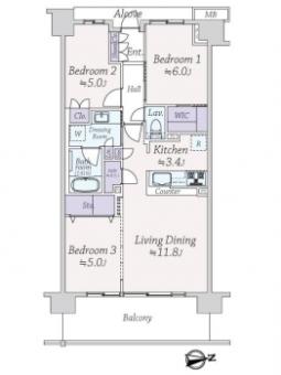 | 間取り | 3LDK | 専有面積 | 70.22m2(21.2坪) 壁芯 |