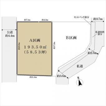 | 接道状況 | 一方 北西約4.4m公道、間口:約16.6m | ||