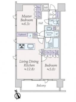 | 間取り | 2LDK | 専有面積 | 56.14m2(16.9坪) 壁芯 |