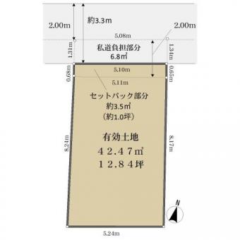 | 土地面積 | 45.88m2(13.8坪) 実測 別途私道負担約6.8m2 (セットバック要約3.5m2) | ||