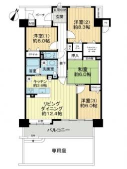 | 間取り | 4LDK | 専有面積 | 97.00m2(29.3坪) 壁芯 |