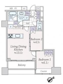 | 間取り | 2LDK | 専有面積 | 55.72m2(16.8坪) 壁芯 |