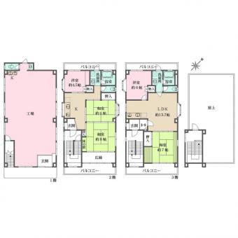 | 備考 | 南・北側両面バルコニー、広々とした屋上あり。 ■本物件は1棟売買となります。※総戸数:3戸(延床面積:220.66m2)1階 種類:工場 構造:鉄骨造1階建 床面積(公簿):1階部分 71.08m2 3階 種類:居宅 構造:鉄骨造1階建 床面積(公簿):3階部分 70.09m2 ■対象地の一部(面積:20.21m2)に地役権設定あり |