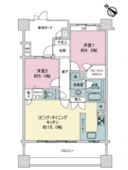 | 間取り | 2LDK | 専有面積 | 60.34m2(18.2坪) 壁芯 |