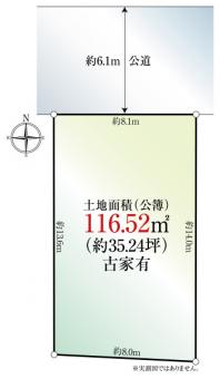 | 土地面積 | 116.52m2(35.2坪) 登記簿 | ||