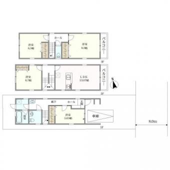 | 土地面積 | 66.11m2(19.9坪) 登記簿 | 建物延面積 | 120.96m2 車庫部分6.48m2含む |