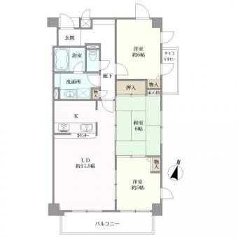 | 間取り | 3LDK | 専有面積 | 71.25m2(21.5坪) 壁芯 |