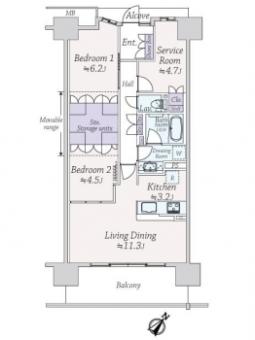 | 間取り | 2SLDK | 専有面積 | 71.39m2(21.5坪) 壁芯 |
