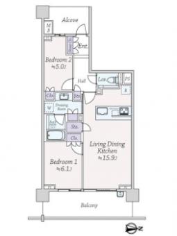 | 間取り | 2LDK | 専有面積 | 63.11m2(19.0坪) 壁芯 |