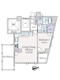 | 間取り | 1LDK | 専有面積 | 53.76m2(16.2坪) 壁芯 |