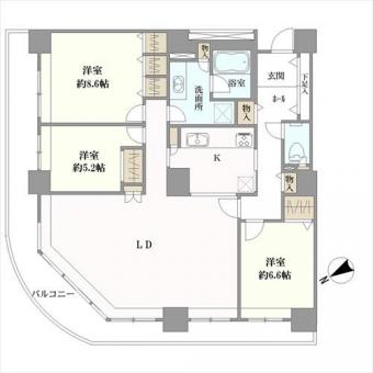 | 間取り | 3LDK | 専有面積 | 106.15m2(32.1坪) 壁芯 |
