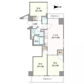 | 間取り | 3LDK | 専有面積 | 54.57m2(16.5坪) 壁芯 |