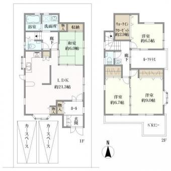 | 土地面積 | 148.77m2(45.0坪) 登記簿 | 建物延面積 | 124.80m2 |