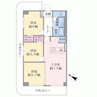 | 間取り | 3LDK | 専有面積 | 71.30m2(21.5坪) |