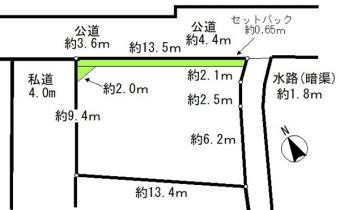 | 備考 | ・北西側の私道(位置指定)は現況隣地敷地となっており、道路形状になっていません。セットバックは土地面積に含む。 |
