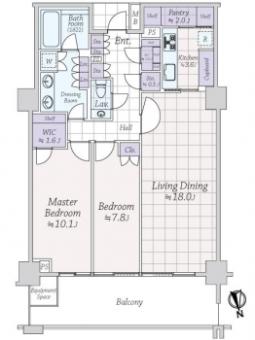 | 間取り | 2LDK | 専有面積 | 100.18m2(30.3坪) 壁芯 |