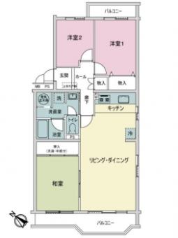 | 間取り | 3LDK | 専有面積 | 74.72m2(22.6坪) 壁芯 |