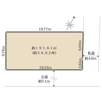 | 土地面積 | 191.81m2(58.0坪) 登記簿 別途私道負担21.00m2 | ||