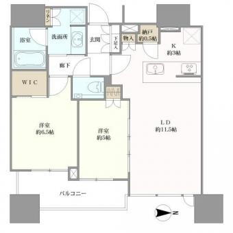 | 間取り | 2LDK | 専有面積 | 60.14m2(18.1坪) 壁芯 |