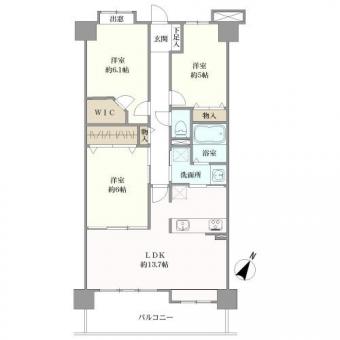 | 間取り | 3LDK+WIC(WIC=ウォークインクローゼット) | 専有面積 | 69.60m2(21.0坪) 壁芯 |