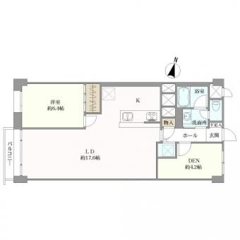 | 間取り | 1LDK+DEN | 専有面積 | 64.41m2(19.4坪) 壁芯 |