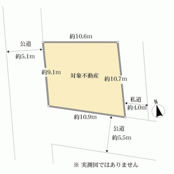 | 土地面積 | 105.51m2(31.9坪) 実測 別途私道負担13.16m2 | ||