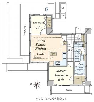 | 間取り | 2LDK | 専有面積 | 56.49m2(17.0坪) 壁芯 |