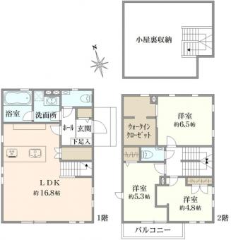 | 土地面積 | 112.81m2(34.1坪) 登記簿 別途私道負担48.45m2 | 建物延面積 | 89.56m2 |