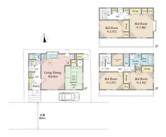 | 土地面積 | 78.81m2(23.8坪) 登記簿 | 建物延面積 | 126.06m2 |